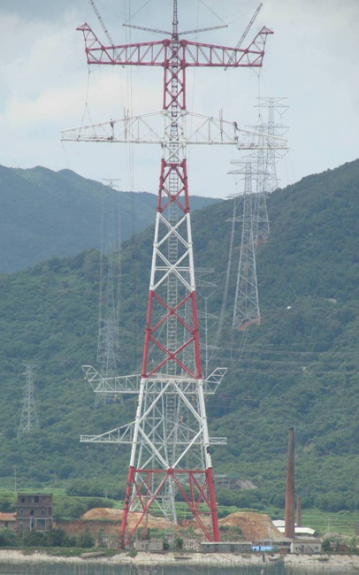 案例内容:莆田LNG电厂至莆田变500千伏ⅠⅡ回线路工程,是国内第一条500千伏同塔双回海上大跨越输电线路。线路起自新建的莆田LNG电厂500千伏升压站,终止于已投运的莆田500千伏变电站,全线采用双回同塔架设,线路全长约35.62公里,海上大跨越段为3.114公里,新建铁塔82基,其中大跨越19号高塔是我国第一基500千伏海上高塔,塔高128.5米。