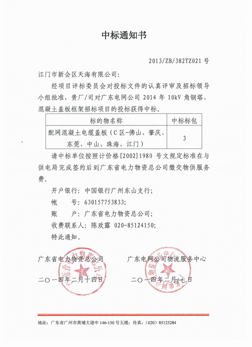 案例内容:广东电网中标C区混凝土盖板 以及10kv角钢