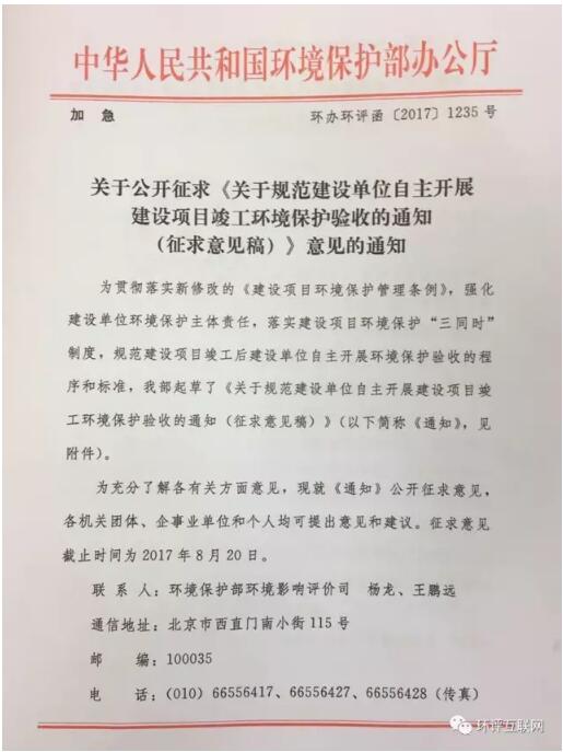 日前,环保部就《关于规范建设单位自主开展竣工环保验收的通知》公开征求意见。全文如下:关于规范建设单位自主开展建设项目竣工环境保护验收的通知(征求意见稿)各省、自治区、直辖市环境保护厅(局),新疆生产建设兵团环境保护局:新修改的《建设项目环境保护管理条例》取消了建设项目竣工环境保护验收行政许可,改为建设单位自主验收,进一步强化了建设单位的环境保护“三同时”主体责任
