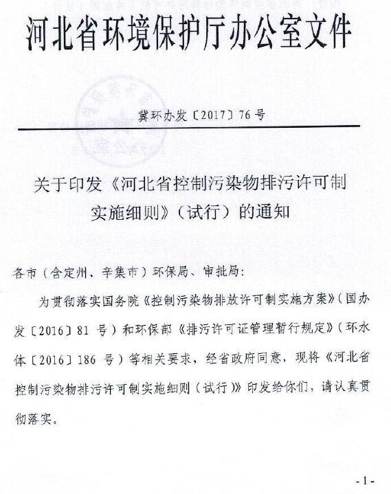 日前,橙电网环保网获悉,《河北省控制污染物排污许可制实施细则》(试行)已经印发。细则对河北省排污许可证的申领等做了详细规定