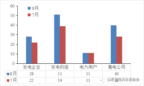 山东8月份集中竞价结果已经出炉,交易电量451540兆千瓦时,比上月环比增长81%,统一出清价差-9元/兆瓦时。发电企业、发电机组以及售电公司数量相较7月都有所增加,其中发电企业数量增加6家、发电机组增加12台、售电公司增加12家(见图1)