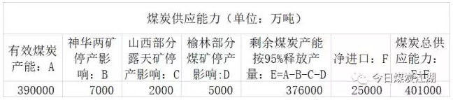 当前国内煤炭供应能力8月份以来,根据,山西、内蒙古、陕西等主产省区陆续公布了生产和建设煤矿生产能力,当前三省区生产煤矿、竣工验收煤矿以及试运转煤矿等有效煤炭产能约24.4亿吨/年,其他省区生产和试运转煤炭产能约13.6亿吨/年,如果再加上山西、内蒙古、陕西三省区生产和建设产能名单中未公布但实际上已经在贡献煤炭产量的约1亿吨煤炭产能,当前国内总的有效煤炭产能约39亿吨/年。如果这些煤炭产能全部正常释放,再加上全年2.5亿吨左右的进口煤,国内煤炭总的供应能力在41.5亿吨