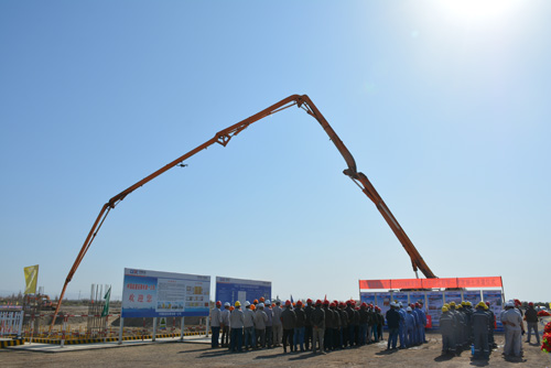 8月29日上午,新疆华电吐鲁番2×350MW冷热电多联供工程按期举行了1号机主厂房第一方混凝土浇筑仪式。华电新疆公司党组成员、副总经理水海波、项目总指挥李国璞、副总指挥任福俊、副总指挥秦玉挺、项目公司各部门、和祥建通工程管理公司监理项目部、各施工单位参加了此次仪式