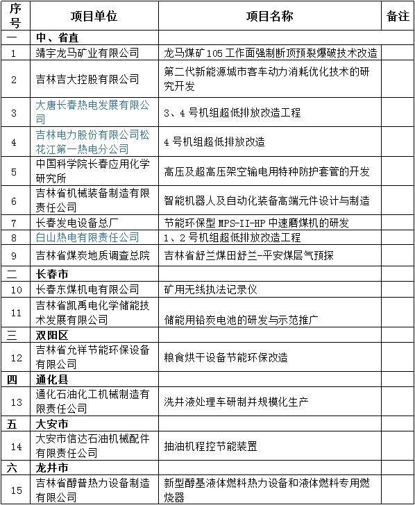 橙电网电力网获悉,近日吉林省能源局发布了2017年全省“节能减排和生态保护专项资金(能源发展)”支持项目公示,其中涉及大唐长春热电发展有限公司3、4号机组超低排放改造工程,吉林电力股份有限公司松花江第一热电分公司4号机组超低排放改造,白山热电有限责任公司1、2号机组超低排放改造工程等,具体情况如下:2017年全省“节能减排和生态保护专项资金(能源发展)”支持项目公示吉林省能源局依据《吉林省省级节能减排和生态保护专项资金管理办法》,对2017年度全省申报的项目