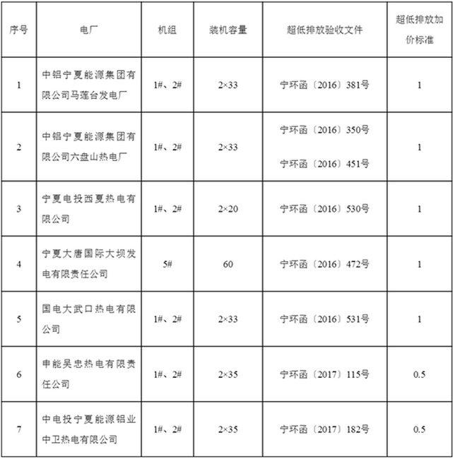 为贯彻落实国务院关于取消工业企业结构调整专项资金,降低国家重大水利工程建设基金和大中型水库移民后期扶持基金,合理调整电价结构的决定,按照国家发展改革委统一部署,经宁夏回族自治区人民政府同意,决定疏导我区燃煤发电机组超低排放电价。根据《国家发展改革委 环境保护部 国家能源局关于实行燃煤电厂超低排放电价支持政策有关问题的通知》规定,对中铝宁夏能源集团有限公司马莲台发电厂等7家电厂已完成超低排放改造、经自治区环保厅验收合格并符合超低限值要求的燃煤发电机组执行超低排放电价,执行日期自2017年7月1日起