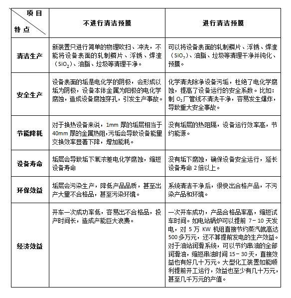对新系统来说,设备和管道在安装过程中不可避免会有各种杂物和泥沙遗留在系统中,其设备和管道在制造、安装过程中,难免会有些焊接碎屑、切削物、建筑物碎片,换热器表面往往有浮锈和油污。这些都会促进换热设备的腐蚀和污垢沉积,为了保证工艺系统的安全长周期运行和延长设备使用寿命,必须对新系统进行开车前的清洗预膜
