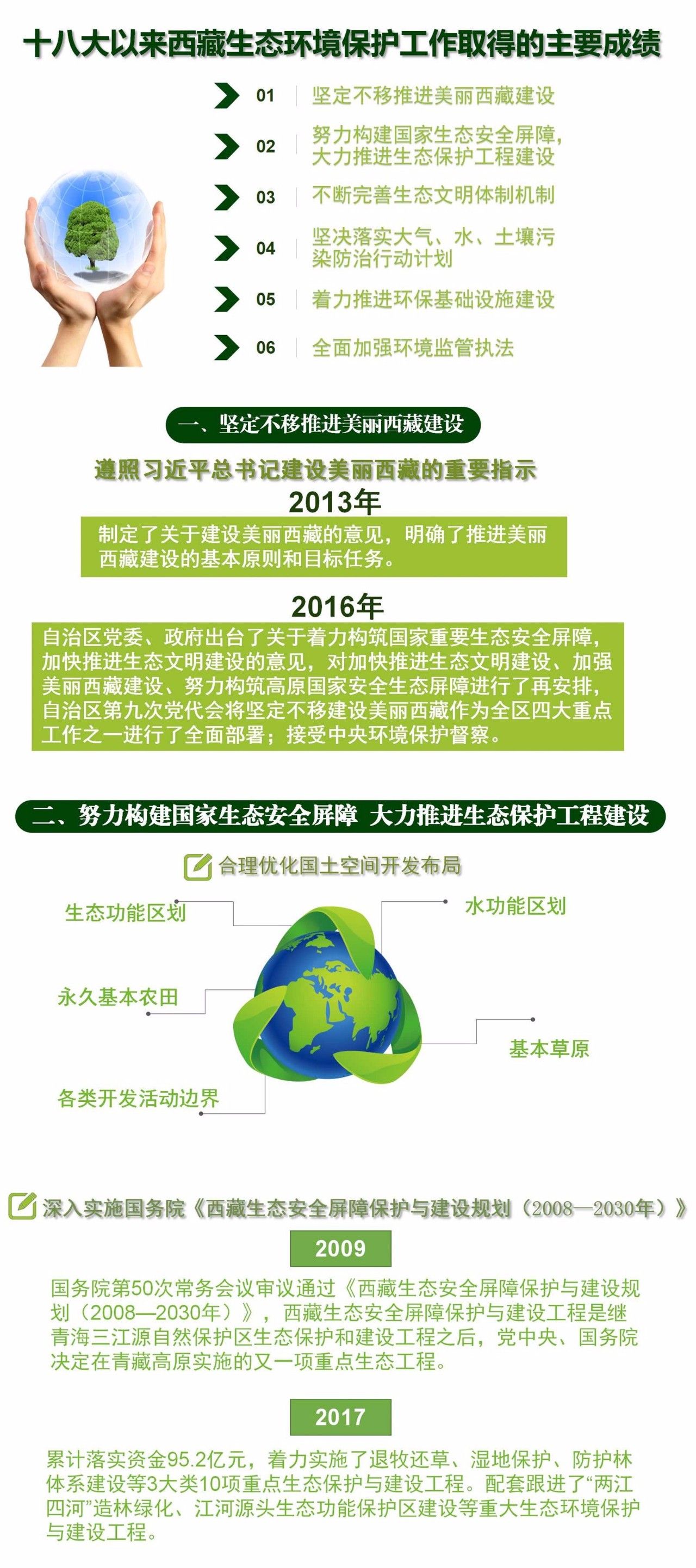 9月13日,西藏自治区人民政府新闻办公室召开喜迎党的十九大暨西藏“砥砺奋进五年”发展成就系列新闻发布会,西藏自治区环保厅副厅长张天华就五年来我区生态环境保护所取得的发展成就作了详细介绍。发布会上都如何介绍了这五年西藏加强环境保护、严守生态安全底线红线、建设美丽西藏?党的十八大以来我区生态环境保护工作都取得了什么样的成就?西西带您一图读懂—— 原标题:一图