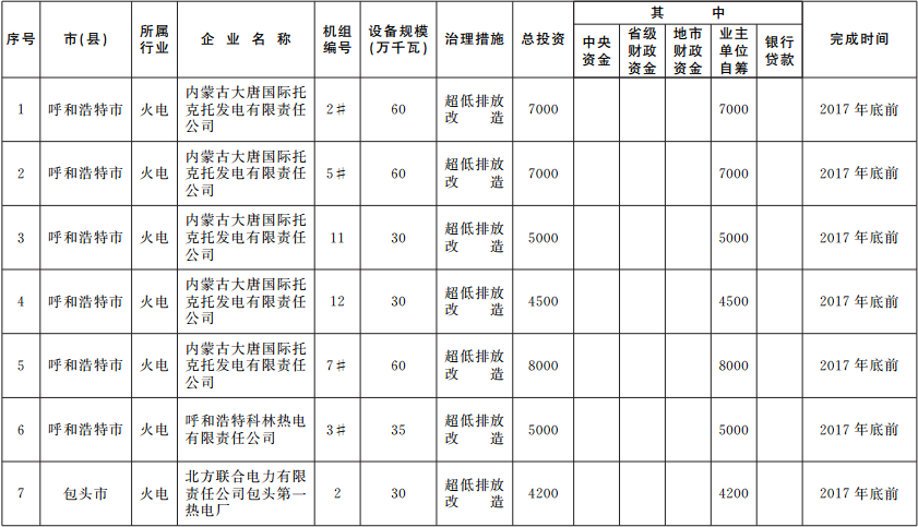 橙电网电力网获悉,近日内蒙古人民政府印发了《内蒙古自治区2017年度大气污染防治实施计划》。文件指出,积极开展火电行业燃煤机组超低排放改造工作,计划年底前完成1000万千瓦燃煤机组超低排放改造工作