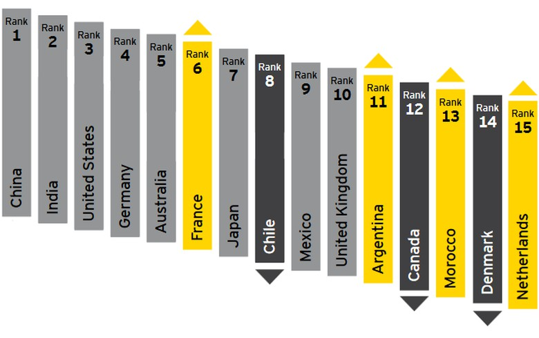 根据安永的可再生能源国家吸引力指数报告(RECAI),前三位排名依旧无变化,中国仍是第一,印度和美国分居二、三位。可再生能源国家吸引力指数:中印美仍是前三安永指出,由于针对风能的购电协议终止及太阳能拍卖中投标价大幅下滑,印度第二的位置相当不稳